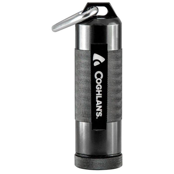 Coghlan's Match Case is a dependable way to protect matches from the elements. This watertight aluminum case carries up to 30 of Coghlan's Waterproof Matches and up to 12 of Coghlan's 5cm Storm Matches. Gasketed with a rubber O-ring, this durable case will ensure your matches are dry and ready when you need them. Made of 6000 series aluminum, this rugged case has a knurled finish on the body and screw-off cap for ease of use with wet or cold hands. The scratch-resistant anodized aluminum exterior features an integrated strike pad. The product comes with 2 additional replacement strike pads inside. The case comes with an integrated carabiner allowing it to be attached to backpacks, daisy chain loops, belts, and more.