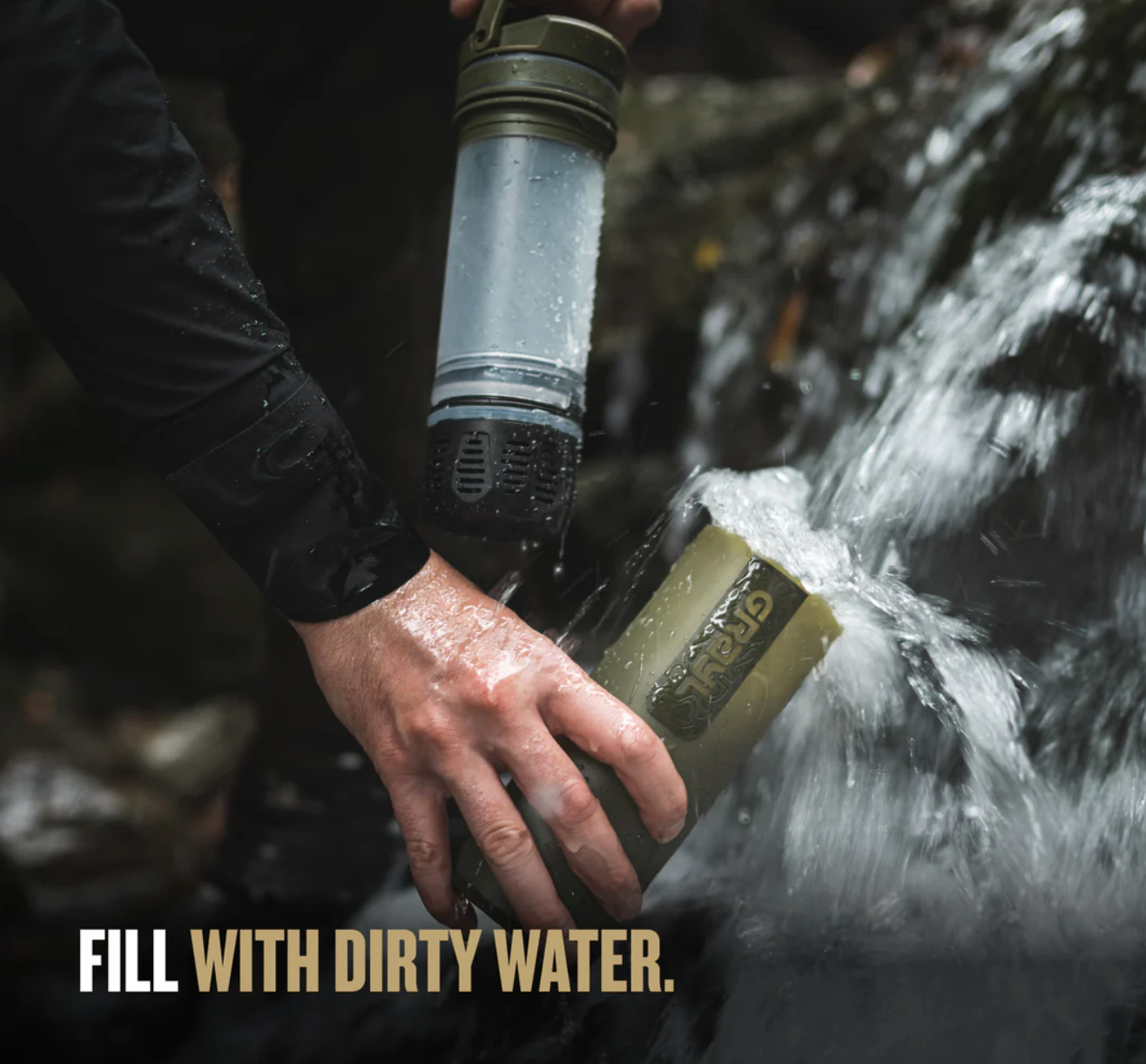 - Laser-engraved with multi-color signature Grayl topo art.
